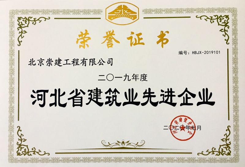 北京崇建公司榮獲“2019年度河北省建筑...