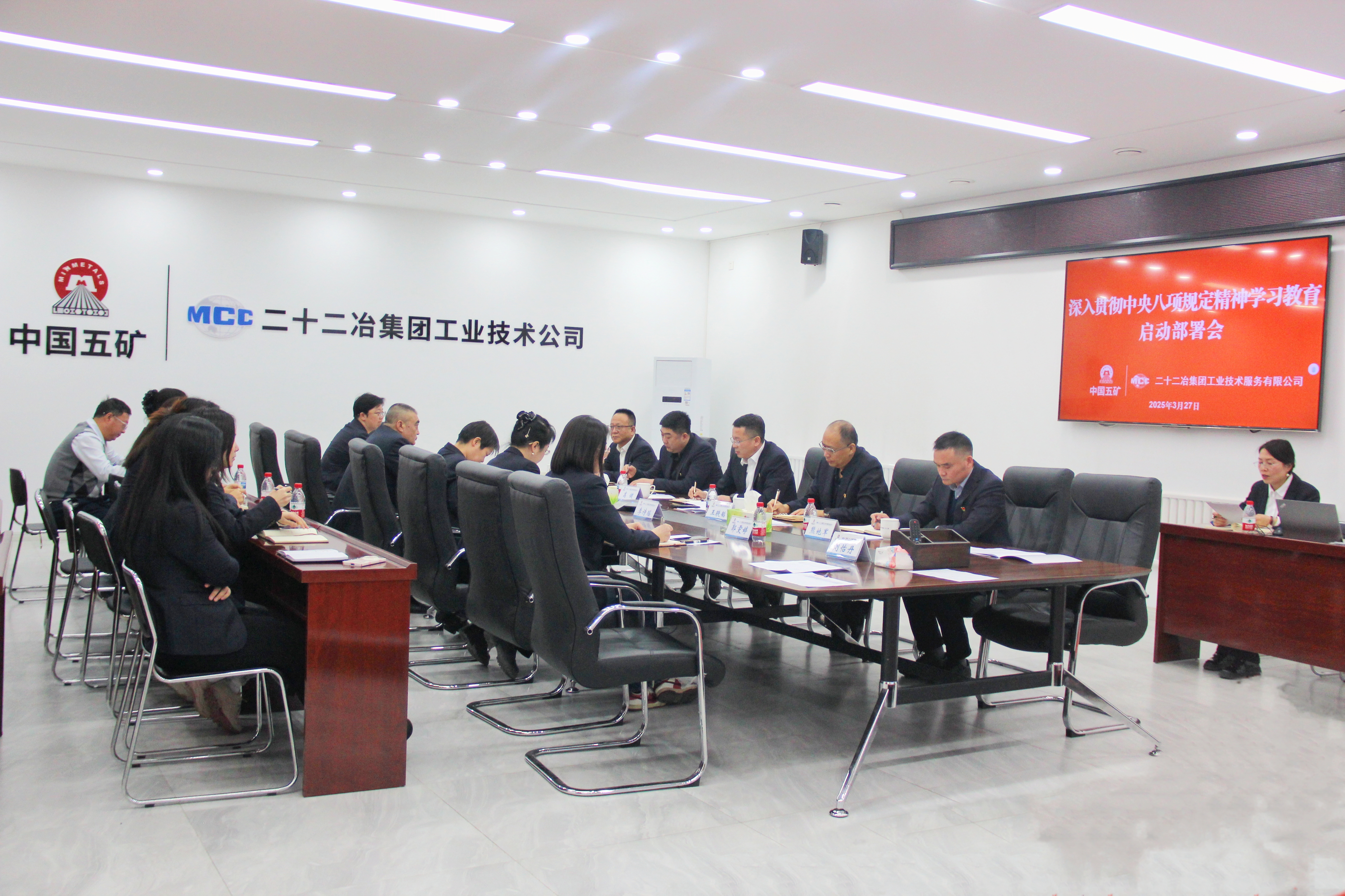 3月27日,工業(yè)技術(shù)公司黨總支召開專題會議,深入學習領(lǐng)會習近平總書記關(guān)于落實中央八項規(guī)定精神的重要論述,傳達中央黨的建設(shè)工作領(lǐng)導小組會議、中央辦公廳相關(guān)通知精神,貫徹落實中國五礦黨組、中國中冶黨委、中國二十二冶黨委有關(guān)要求,對工業(yè)技術(shù)公司開展深入貫徹中央八項規(guī)定精神學習教育進行部署,全面啟動相關(guān)工作。公司黨總支書記、總經(jīng)理高健出席會議并講話。其他領(lǐng)導班子成員結(jié)合本次學習內(nèi)容進行交流研討。