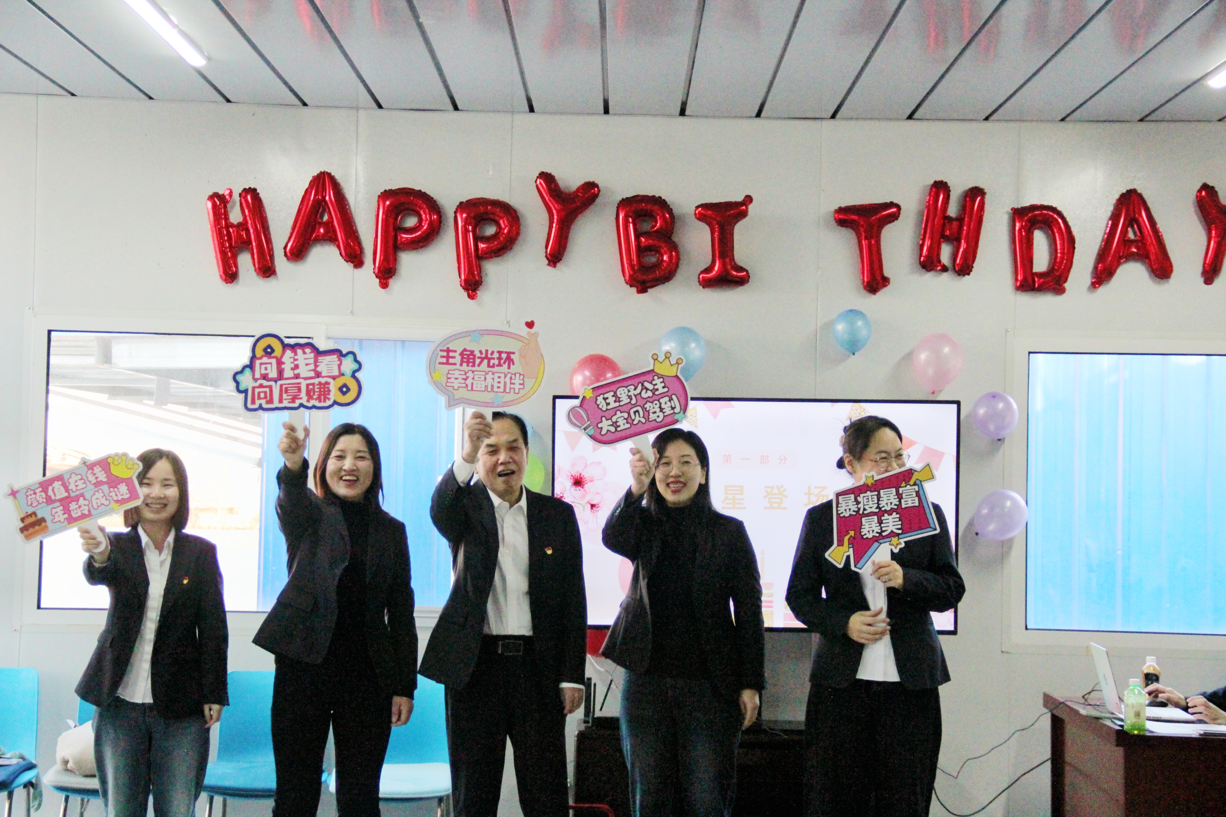隨著歡快的音樂(lè)響起,壽星們逐一登場(chǎng),他們的臉上洋溢著幸福的笑容,合影留念,定格下這美好的瞬間。緊接著,屏幕上播放起黨群工作部精心策劃的采訪(fǎng)視頻,視頻中,職工們的深切祝福如同春風(fēng)拂面,溫暖著即將退休的書(shū)記與項(xiàng)目經(jīng)理的心,也觸動(dòng)了在場(chǎng)每一個(gè)人的心弦。
