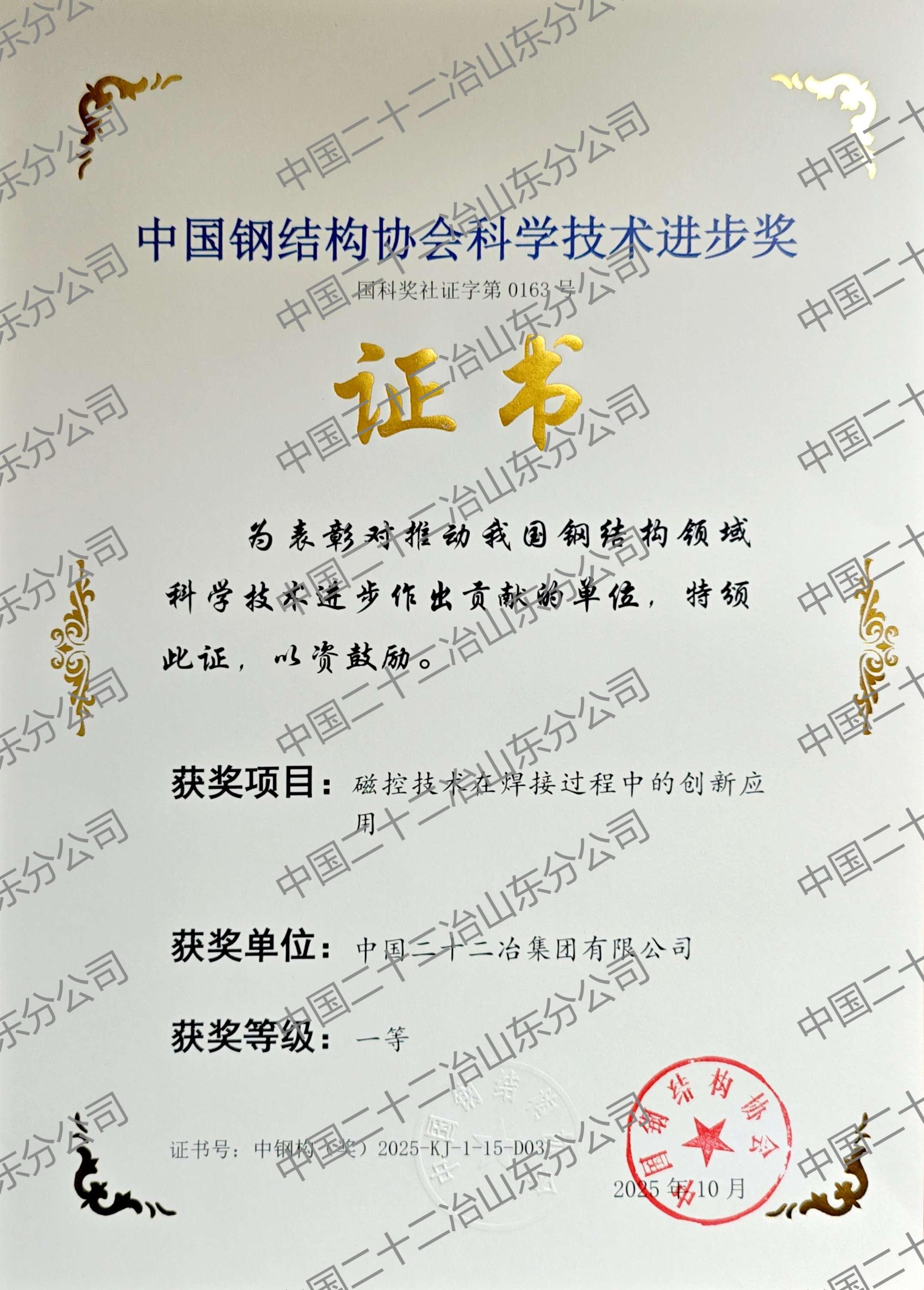 近日,山東公司在工程技術(shù)創(chuàng)新領(lǐng)域捷報(bào)頻傳,依托持續(xù)的創(chuàng)新活動(dòng)與實(shí)踐轉(zhuǎn)化積累,在科技獎(jiǎng)項(xiàng)評(píng)選中收獲新成果,彰顯行業(yè)技術(shù)引領(lǐng)力。公司參與研發(fā)的《磁控技術(shù)在焊接過程中的創(chuàng)新應(yīng)用》榮獲中國(guó)鋼結(jié)構(gòu)協(xié)會(huì)科學(xué)技術(shù)進(jìn)步獎(jiǎng)一等獎(jiǎng)。