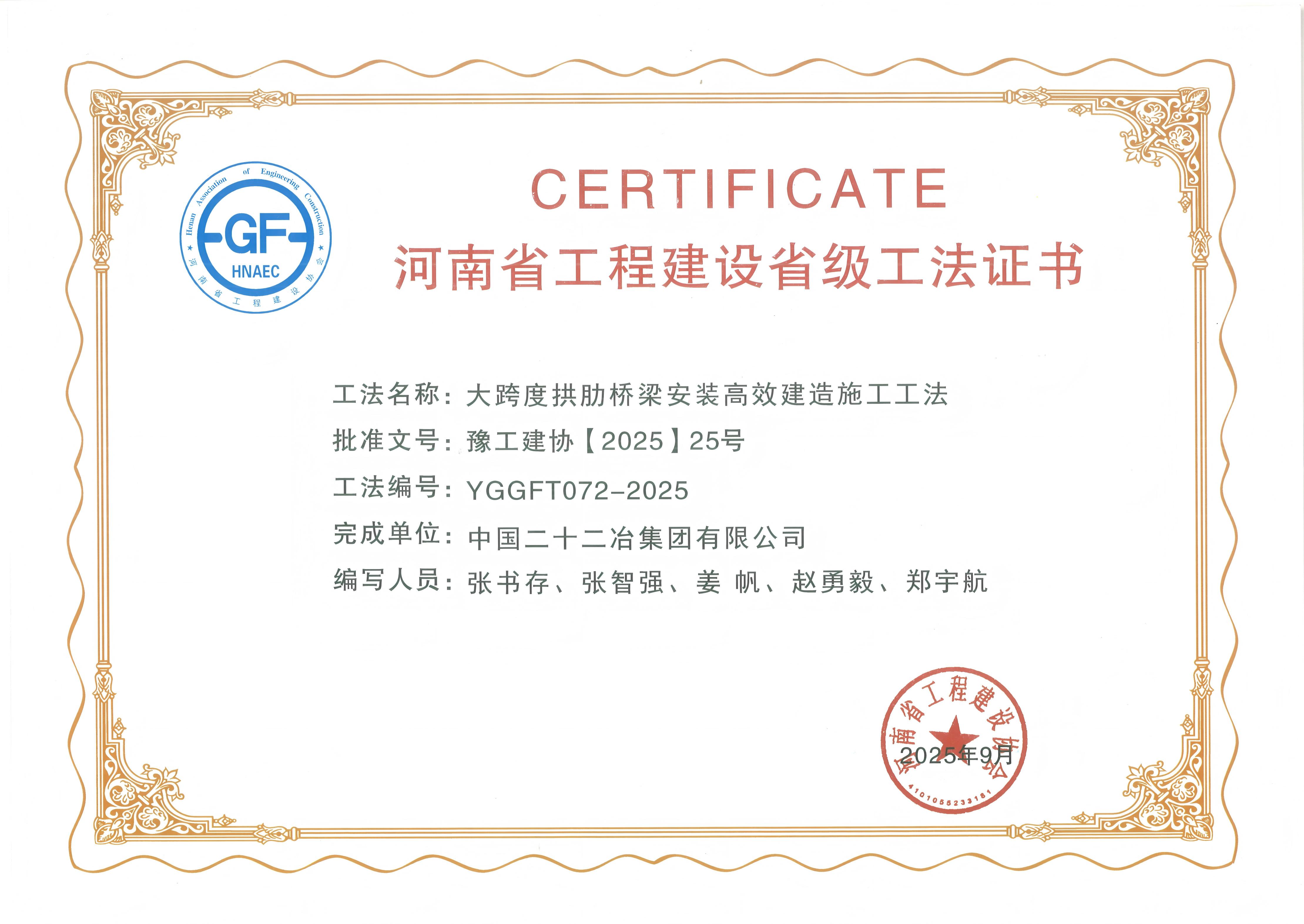 在山東省住房城鄉(xiāng)建設(shè)廳公布2025年度山東省工程建設(shè)工法名單,公司《脈沖復(fù)合磁場輔助組裝圓管工字鋼GMAW高速焊接施工工法》憑借技術(shù)創(chuàng)新性與實踐價值,獲評“山東省工程建設(shè)典型工法”;同期,河南省工程建設(shè)協(xié)會公布年度省級協(xié)會工法,公司《大型場館索膜結(jié)構(gòu)支撐卸載施工工法》《智能旋挖式預(yù)制管樁樁芯土高效清理施工工法》《大跨度拱肋橋梁安全高效建造施工工法》3項成果亦成功入選該省級協(xié)會工法名單。