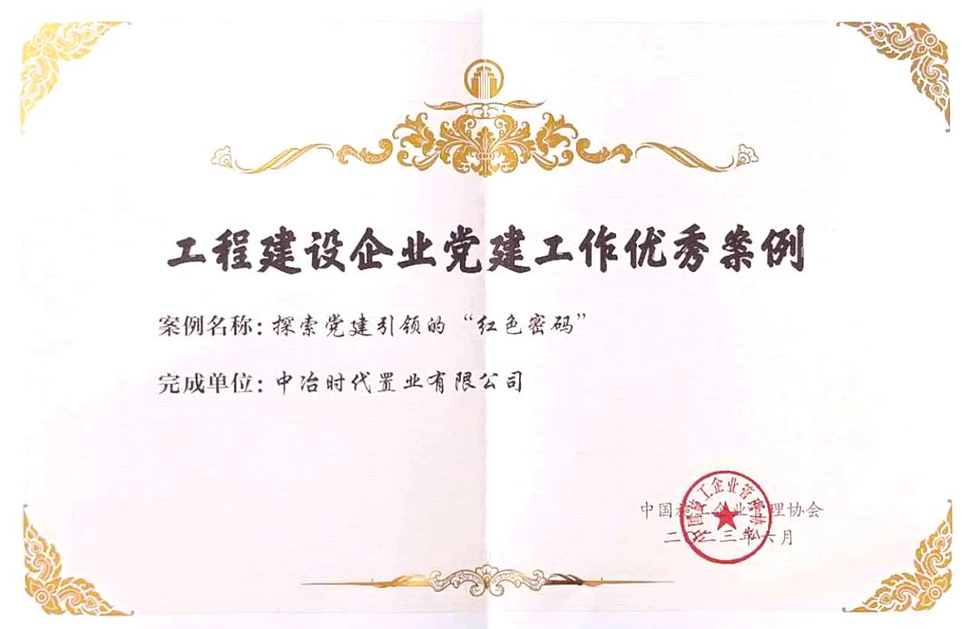 近日,中國施工企業(yè)管理協(xié)會公布了全國工程建設企業(yè)黨建工作最佳案例和優(yōu)秀案例的評選結(jié)果,時代置業(yè)公司申報的《探索黨建引領的“紅色密碼”》獲評全國工程建設企業(yè)黨建工作優(yōu)秀案例。