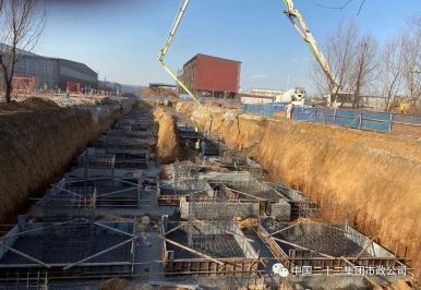 市政公司海城市恒盛鑄業(yè)1*1350m3高爐及配套公輔設施工程項目中礦槽工程進行基礎澆筑
