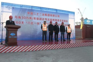 5月1日,市政公司2020年大干60天“六比一創(chuàng)”建功立業(yè)勞動競賽啟動儀式在烏海30萬噸/年熔融還原法高純鑄造生鐵項目部拉開帷幕。賽思普科技有限公司副總經(jīng)理周海川同志,二十二冶集團公司工會綜合管理部業(yè)務主管常洪文同志,市政公司黨委副書記、紀委書記、代理工會主席季濤同志,市政公司總會計師盧衛(wèi)兵同志以及烏海項目相關(guān)人員出席此次活動。