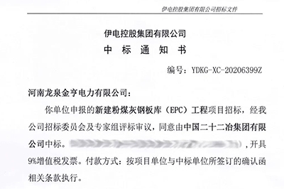 中冶重工唐山公司中標(biāo)河南龍泉金亨電力有限公司新建粉煤灰鋼板庫(EPC)工程項目