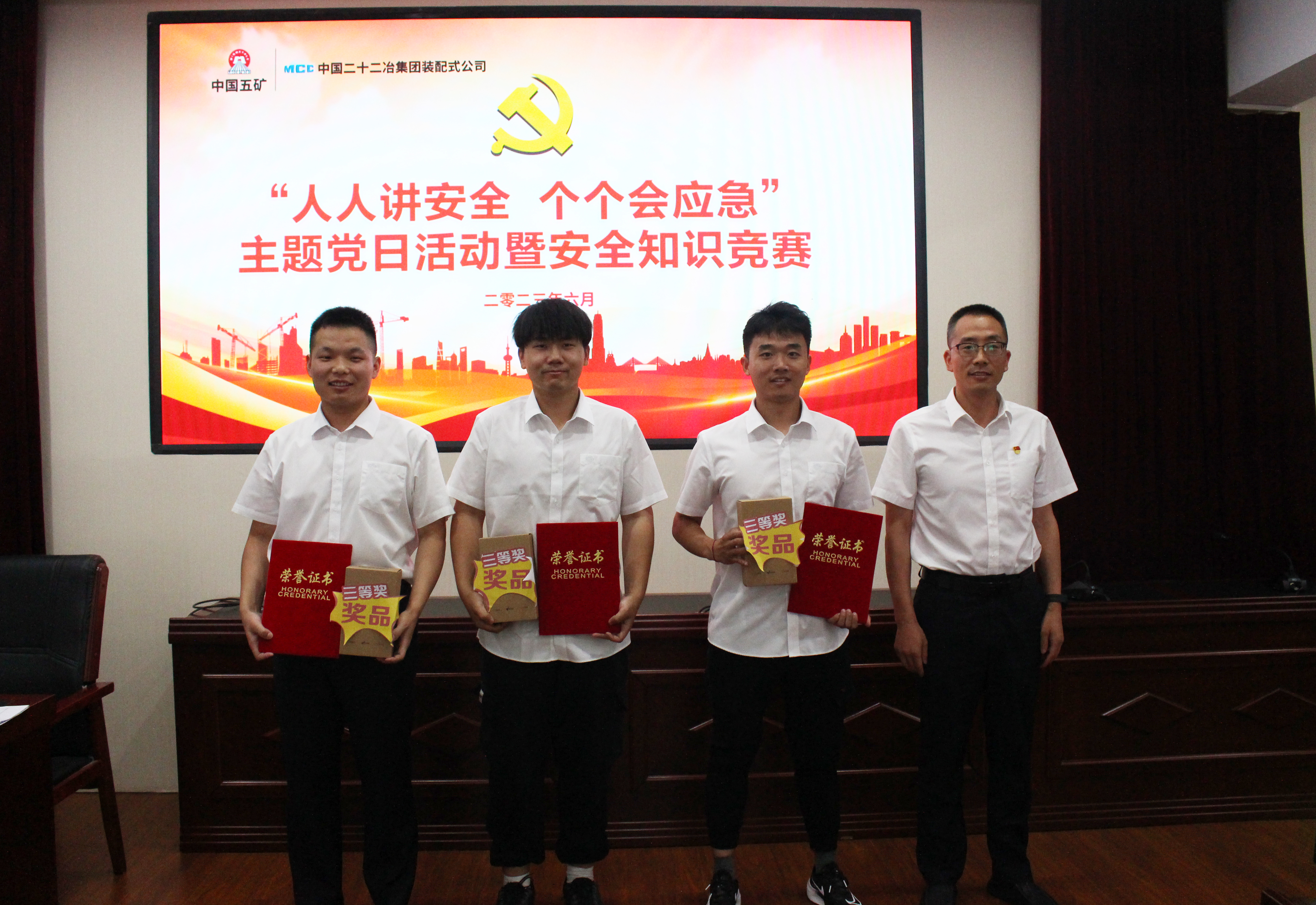 為迎接中國共產(chǎn)黨成立102周年,扎實(shí)推進(jìn)“安全生產(chǎn)月”各類活動(dòng),落實(shí)落細(xì)集團(tuán)公司“大品牌建設(shè)年”主題主線,不斷促進(jìn)黨建工作與中心工作深入融合,6月29日上午,裝配式公司黨群工作部與安全環(huán)保部聯(lián)合舉辦了以“人人講安全 個(gè)個(gè)會(huì)應(yīng)急”為主題的“黨建+安全”知識(shí)競(jìng)賽活動(dòng)。本次競(jìng)賽共6支隊(duì)伍參賽,裝配式公司副總經(jīng)理孔令雨、副總經(jīng)濟(jì)師張健、經(jīng)理助理覃曉君作為評(píng)委出席本次活動(dòng)。