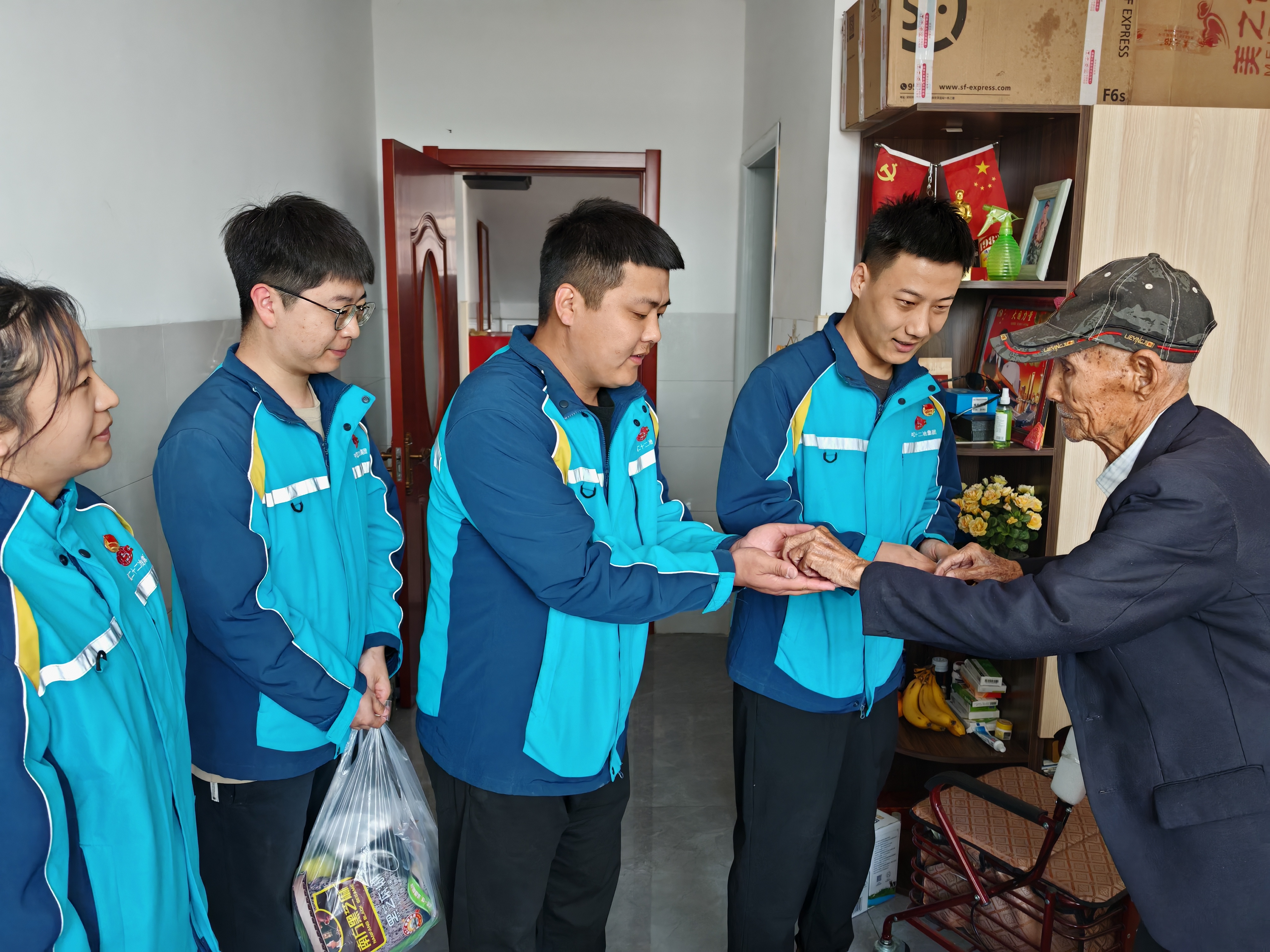 玉田職教中心項(xiàng)目團(tuán)支部開展“聽老紅軍爺爺講故事”主題活動(dòng)。組織團(tuán)員青年來到鴉鴻橋鎮(zhèn)穆莊子村福順老年公寓看望99歲高齡的老紅軍周子新爺爺。周爺爺講述自己在東北野戰(zhàn)軍第十三兵團(tuán)當(dāng)參謀長的經(jīng)歷“記得那時(shí)候被日軍合圍,不分日夜的在田間巡查,天當(dāng)被,地當(dāng)床,野外睡覺心不涼,抗日救國心中燃,刮風(fēng)下雨心不寒”?!案锩且环N信仰,心中有信仰,腳下就有了方向,我們要矢志不渝的跟黨走,國家一定會(huì)越來越好,你們青年是國家的未來,希望你們不斷超越自我,實(shí)現(xiàn)自己的夢(mèng)想,為祖國的繁榮昌盛貢獻(xiàn)自己的一份力量?!敝軤敔攲?duì)團(tuán)員青年的囑托。聽老紅軍爺爺講起當(dāng)年的光輝歲月,讓大家倍加珍惜眼前的幸福生活,青年員工將繼承老一輩革命家,不畏艱險(xiǎn)、以苦為樂的革命精神。在工作中將用責(zé)任心和使命感,發(fā)揚(yáng)團(tuán)結(jié)拼搏的精神,用實(shí)際行動(dòng)為項(xiàng)目優(yōu)質(zhì)履約貢獻(xiàn)力量,讓紅色基因薪火相傳。最后,青年員工給老紅軍爺爺送上慰問品和紀(jì)念品,表達(dá)對(duì)革命先輩的關(guān)心和敬仰。