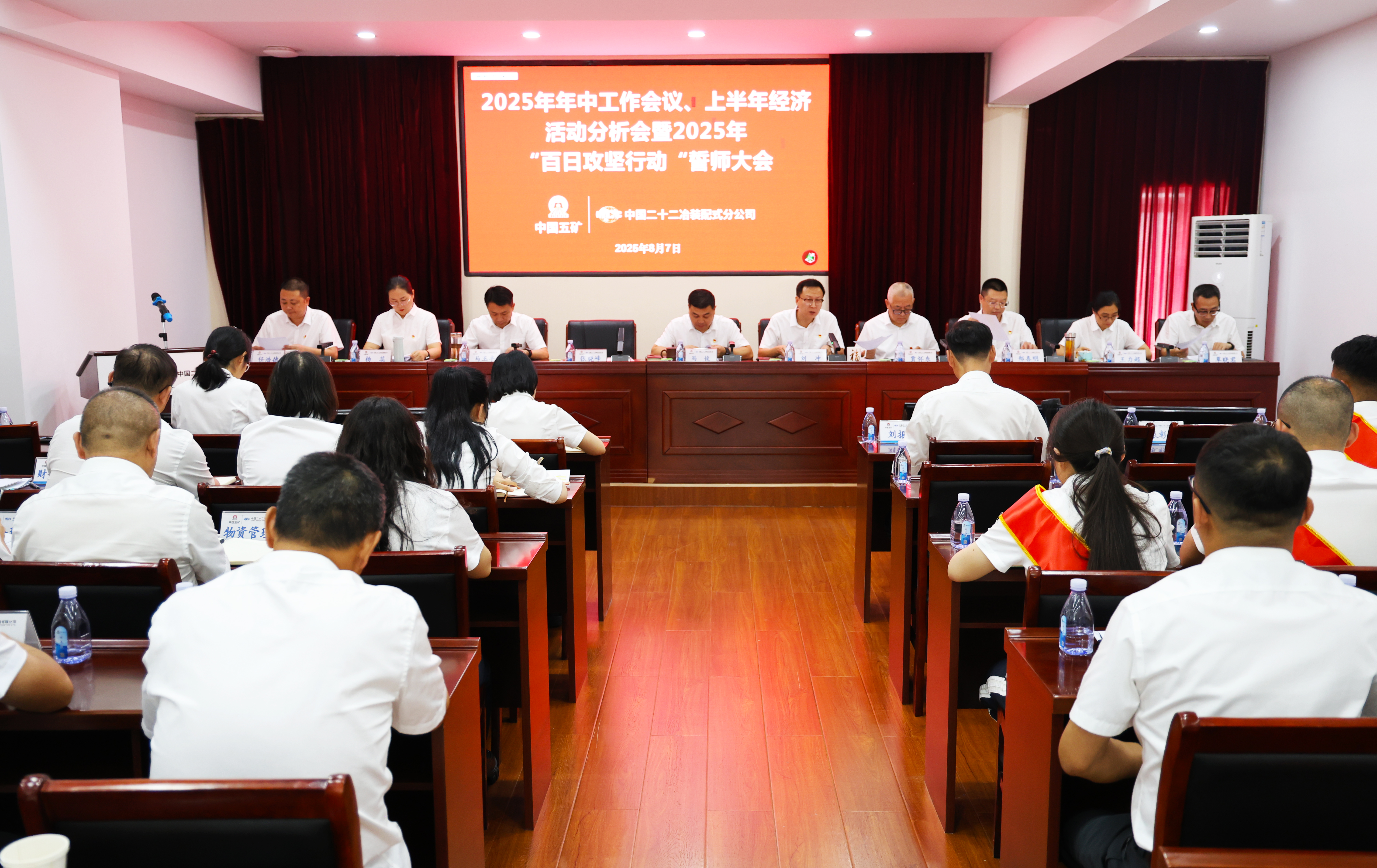 8月7日,中國二十二冶裝配式分公司召開2025年年中工作會議、上半年經(jīng)濟(jì)活動分析會暨“百日攻堅”誓師大會。會議全面總結(jié)2025年上半年工作,客觀分析當(dāng)前面臨的形勢和問題,明確下半年重點工作,并吹響了“百日攻堅”沖鋒號角,為圓滿完成年度目標(biāo)凝聚奮進(jìn)力量。會議由公司黨委書記、工會主席、副總經(jīng)理劉沖主持。
