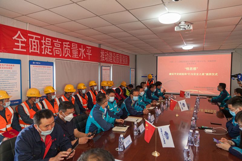 在“學黨史”環(huán)節(jié),通過應急管理局工作人員講述抗美援朝戰(zhàn)爭中的英雄——黃繼光的感人事跡,重溫戰(zhàn)爭年代中國人民解放軍面對敵人的槍林彈雨,舍生忘死、浴血奮戰(zhàn)的大無畏精神;在“悟思想”環(huán)節(jié),對平安班組和“行為安全之星”進行表彰,使大家提高安全生產(chǎn)意識,在施工中及時預見隱患、消除隱患,人人爭做安全標兵,為生產(chǎn)經(jīng)營保駕護航;在“辦實事”環(huán)節(jié),項目部成立“健康家”醫(yī)務室,并為施工人員義務理發(fā)、為職工發(fā)放按摩儀器,用實際行動履行黨全心全意為人民服務的宗旨;在最后的“開新局”環(huán)節(jié),宣貫《“五不”行為專項整治行動實施方案》,強化項目履約能力,提升精細化管理水平;在項目施工現(xiàn)場,項目工程經(jīng)理介紹項目概況、意義、工程難點、亮點,以及建設過程中的感人故事,讓與會人員感受企業(yè)的綜合實力以及建設人民滿意工程的責任擔當。